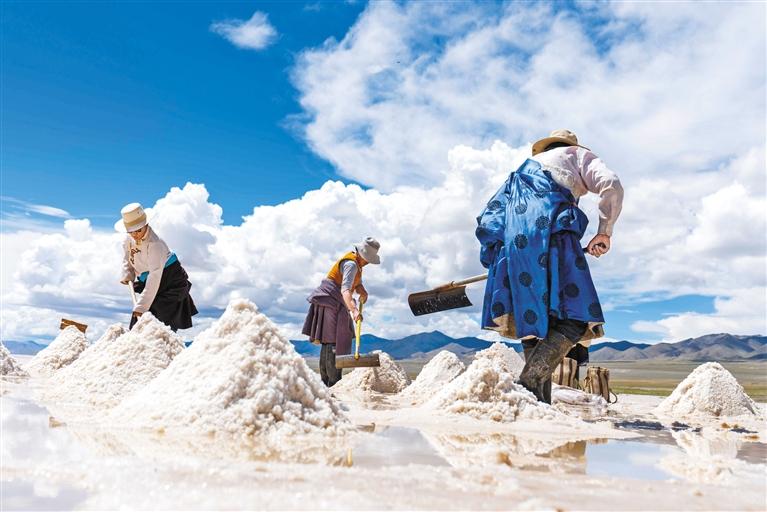 圖為革吉縣牧民在采鹽。新華社記者 旦增尼瑪曲珠 攝