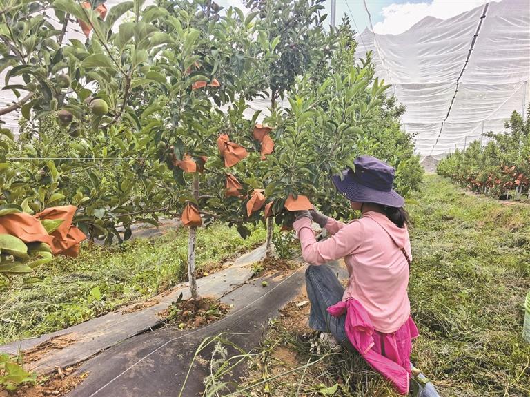 針對當(dāng)?shù)胤N植技術(shù)落后、品種老化等瓶頸,在相關(guān)部門支持下,上誠產(chǎn)業(yè)在百巴鎮(zhèn)率先建成集育種育苗、設(shè)施果園、先進管理技術(shù)于一體的現(xiàn)代化蘋果實驗示范園,通過應(yīng)用現(xiàn)代化設(shè)施裝備和科學(xué)管理手段,有效降低了生產(chǎn)成本,顯著提升了蘋果的產(chǎn)量與品質(zhì)。