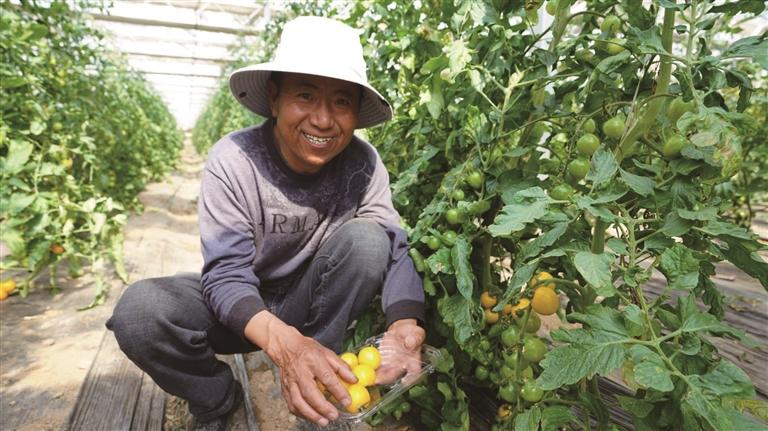 “這批四色圣女果再過一周就能上市了?!蹦窆たh現(xiàn)代農(nóng)業(yè)示范園區(qū)技術(shù)員陳會(huì)才指著藤蔓上色彩斑斕的果實(shí)告訴記者。在他身后,140棟溫室大棚在高原陽光下熠熠生輝,其中1棟10畝的連棟溫室格外醒目。