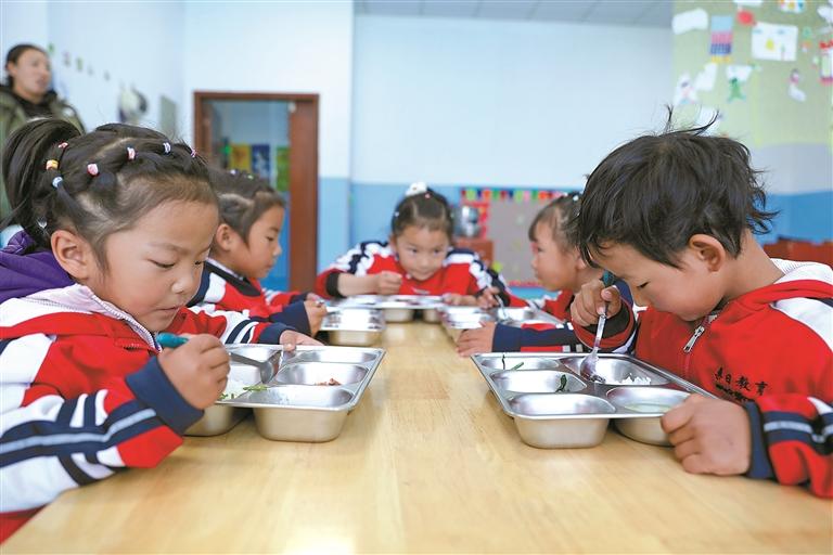 扎嘎新村的幼兒園里,孩子們正在吃營養(yǎng)餐。文/圖 記者 孫開遠(yuǎn) 通訊員 侯勇 嘉措