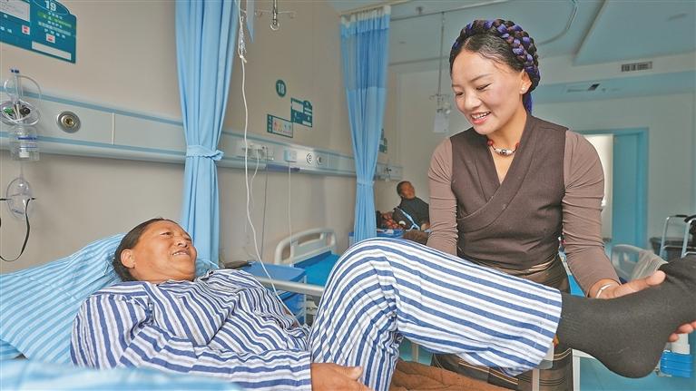 圖為南京市第一醫(yī)院關(guān)節(jié)外科專家團(tuán)隊(duì)了解患者術(shù)后康復(fù)情況。記者 格桑倫珠 攝