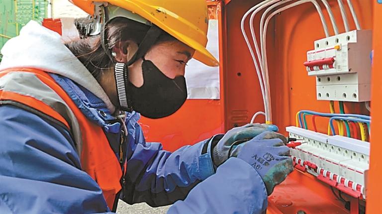 圖為次仁卓瑪正在檢修光伏設(shè)備。記者 萬靖 攝