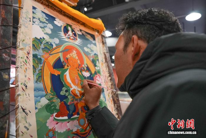 圖為西藏鄉(xiāng)村振興產(chǎn)品展示中心內(nèi)的唐卡繪制體驗(yàn)區(qū)。貢確 攝