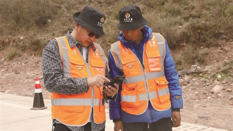 工作人員使用昌都市卡若區(qū)農(nóng)村公路管理系統(tǒng)查看信息。圖由自治區(qū)交通運輸廳提供
