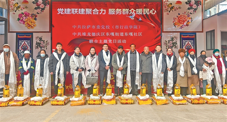 黨校黨員為30戶困難居民發(fā)放慰問品。記者 格桑倫珠 攝