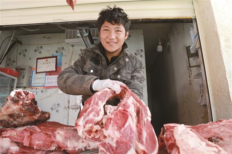 商戶(hù)正在展示自家牛肉。文/圖 通訊員 果珍 仁青 記者 張雪芳