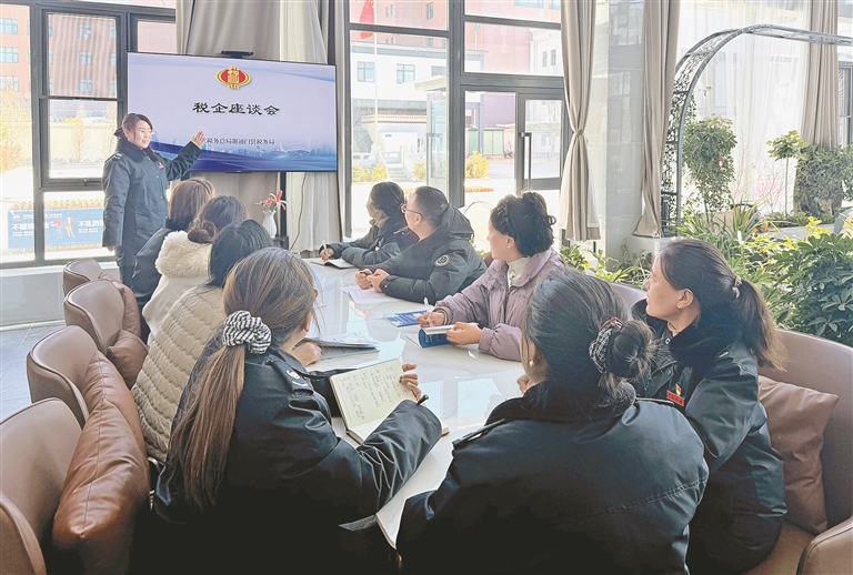 圖為國(guó)家稅務(wù)總局謝通門縣稅務(wù)局召開(kāi)稅企座談會(huì),向企業(yè)問(wèn)計(jì)問(wèn)需。記者 袁海霞 攝