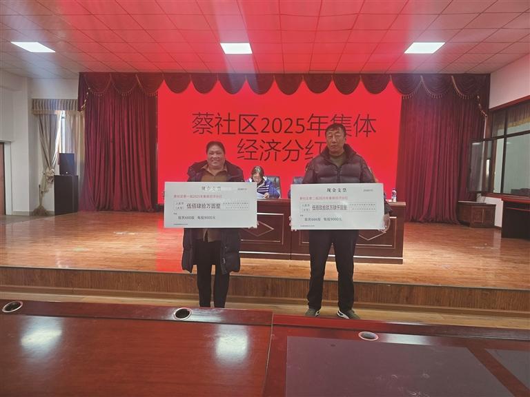 此次分紅面向蔡社區(qū)一組、二組全體股民,分紅標(biāo)準(zhǔn)清晰、發(fā)放精準(zhǔn)。其中,社區(qū)一組共計600股,每股分紅金額為9000元,累計發(fā)放分紅資金540萬元;社區(qū)二組共計666股,每股同樣按照9000元標(biāo)準(zhǔn)發(fā)放,累計發(fā)放分紅資金599.4萬元,兩組合計發(fā)放分紅總額達(dá)1139.4萬元。與2024年分紅數(shù)據(jù)相比,實(shí)現(xiàn)了顯著增長:每股分紅金額從7500元提升至9000元,漲幅達(dá)20%;分紅總額從949.5萬元增長至1139.4萬元,增加了189.9萬元。這一組組亮眼的數(shù)據(jù),直觀展現(xiàn)了蔡社區(qū)集體經(jīng)濟(jì)近年來穩(wěn)步發(fā)展、持續(xù)向好的良好態(tài)勢,也印證了社區(qū)產(chǎn)業(yè)發(fā)展、集體資產(chǎn)管理的扎實(shí)成效。