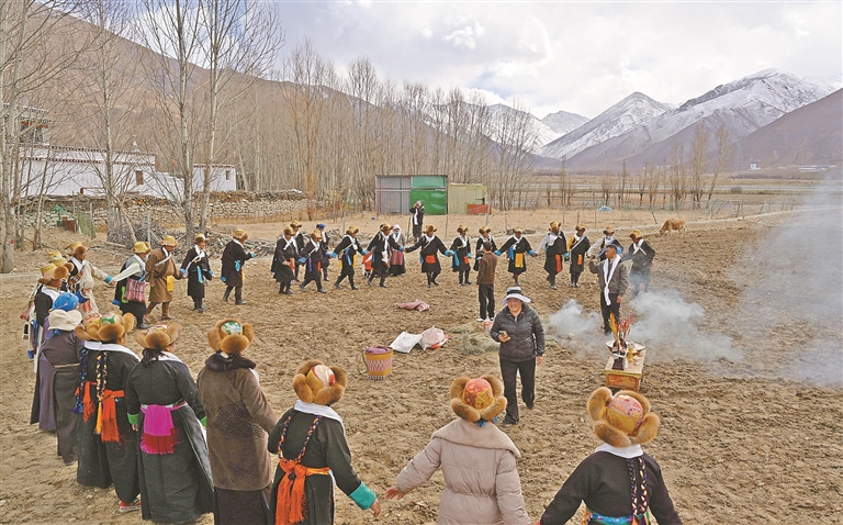 3月16日,拉薩市達(dá)孜區(qū)塔杰鄉(xiāng)塔杰村的田野里,一年一度的春耕儀式熱鬧啟幕。