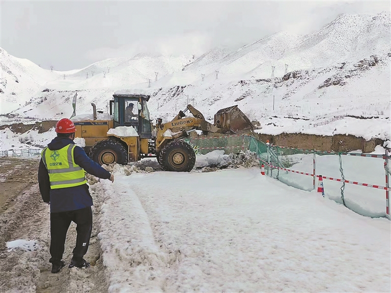 中交養(yǎng)護(hù)工程公司項(xiàng)目組啟動(dòng)應(yīng)急響應(yīng),組織人員冒雪養(yǎng)護(hù)道路。記者 王莉 攝