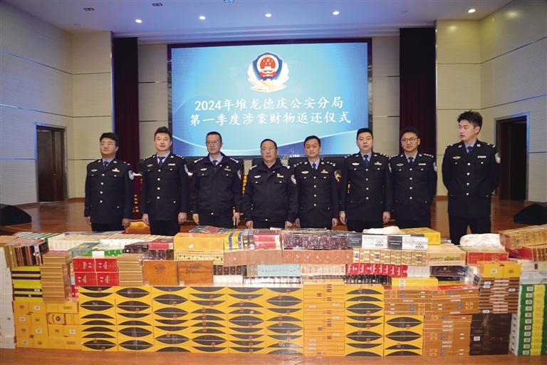 3月29日,拉薩市公安局堆龍德慶公安分局舉行2024年第一季度追贓返還儀式,現(xiàn)場返還追回的2500余條香煙及各類涉案物品、資金,總價值達100萬余元。