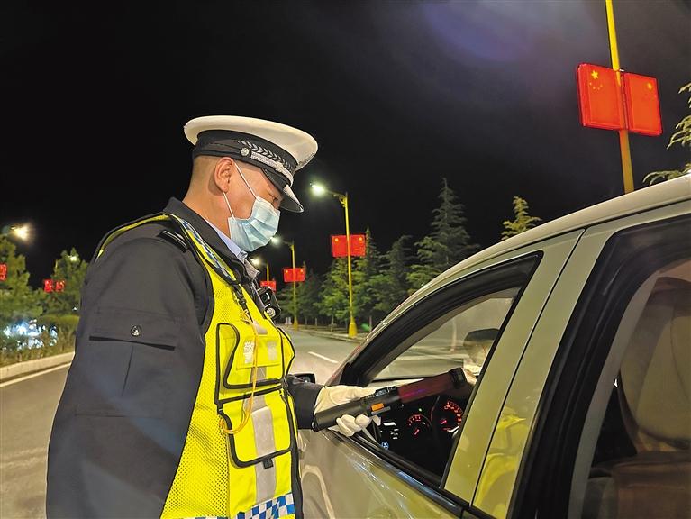 拉薩交警夜查行動現(xiàn)場。 西藏日報記者 鹿麗娟 攝