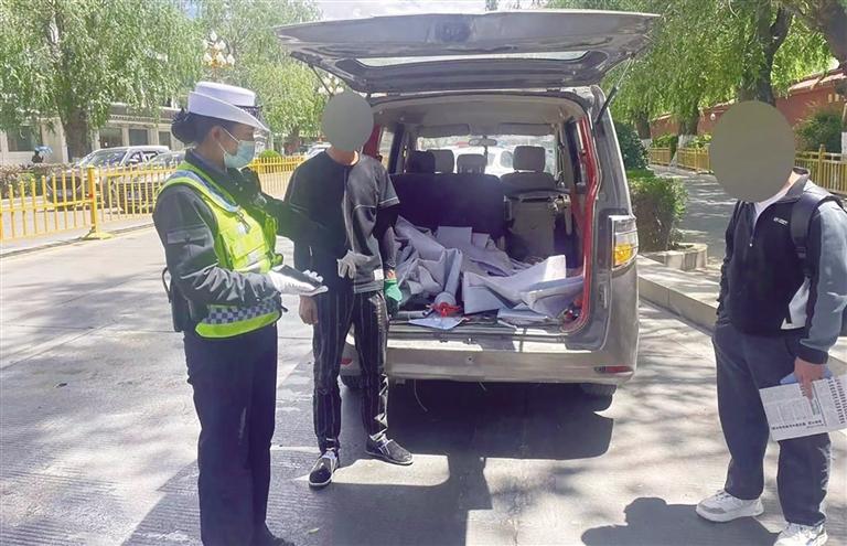 查獲處罰現(xiàn)場(chǎng)。 圖由拉薩市公安局交警支隊(duì)提供