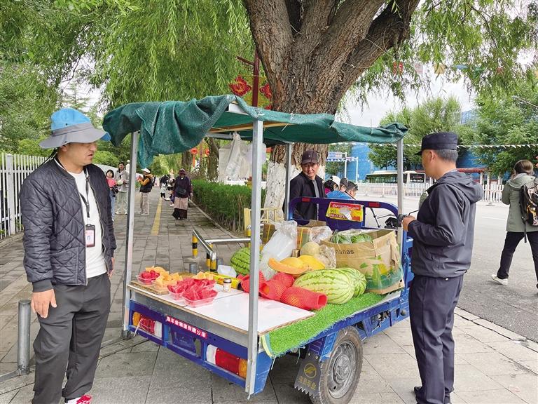 “我們從每日早上10點(diǎn)至晚上11點(diǎn),對(duì)布達(dá)拉宮南門、宗角祿康東門采取值班執(zhí)勤等方式進(jìn)行不間斷盯守,同時(shí)加強(qiáng)城管執(zhí)法大隊(duì)日常路段巡查力度,進(jìn)一步鞏固整治工作成效,提高監(jiān)管效率,形成規(guī)范化和長效化的城市管理機(jī)制,共創(chuàng)文明有序的市容環(huán)境?!辈歼_(dá)拉宮周邊亂象專項(xiàng)整治工作專班成員常春告訴記者。