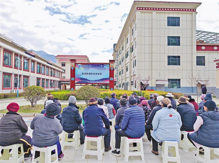 林芝市巴宜區(qū)消防救援大隊(duì)宣傳人員走進(jìn)養(yǎng)老機(jī)構(gòu)開展消防安全宣傳。 本報通訊員 才旺多吉 攝