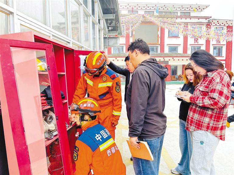 林芝市墨脫縣消防救援大隊(duì)宣傳人員檢查養(yǎng)老機(jī)構(gòu)微型消防站的消防器材。 通訊員 才旺多吉 攝