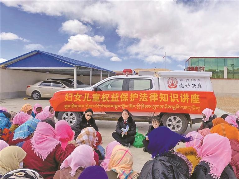 班戈縣人民法院青龍東嘎人民法庭依托流動法庭開展婦女權(quán)益保障法專題法治講座。文/圖 記者 趙文慧 通訊員 巴色 次仁卓瑪