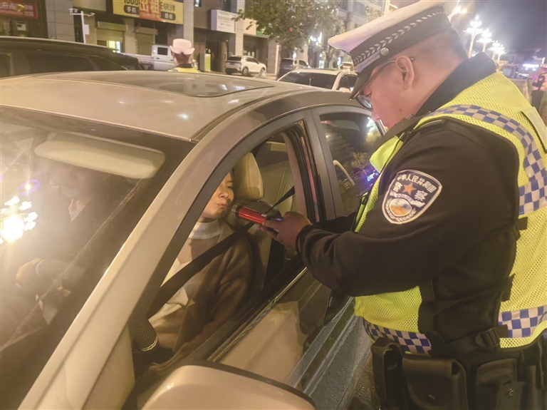 “您好,請吹氣。”“謝謝您的配合,祝您一路平安?!毙袆又?,執(zhí)勤民警采取“定點檢查+流動巡邏”相結(jié)合方式,對過往車輛“逢車必查、逢疑必檢、有違必究”,對過往車輛進行逐一檢查,嚴查超員、超速、無證駕駛、不系安全帶、不戴頭盔等交通違法行為,堅決做到發(fā)現(xiàn)一起,嚴處一起,全力營造嚴防、嚴控、嚴懲的高壓整治態(tài)勢,有力震懾各類交通違法行為,全力遏制重特大道路交通事故的發(fā)生,引導(dǎo)群眾自覺遵守交規(guī),文明出行。同時,民警還積極向廣大駕駛員宣傳交通安全知識,引導(dǎo)教育廣大駕駛員養(yǎng)成“開車不喝酒,喝酒不開車”的良好習慣,營造共同遵守交通法律法規(guī)、安全文明出行的濃厚氛圍。