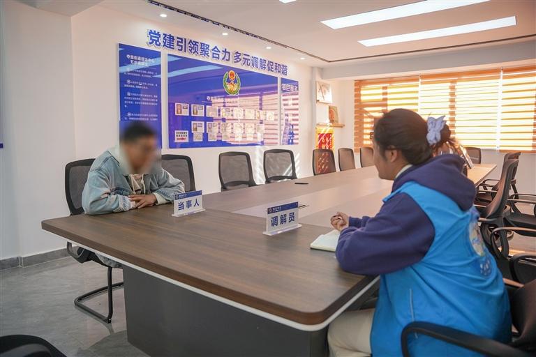 2024年,剛走出大學(xué)校門的旦增卓嘎,因性格柔和、對“化解矛盾”充滿期冀,看到專職調(diào)解員招聘信息后便毅然報名?!捌鸪跸氲锰貏e簡單,覺得只要懂點(diǎn)法律,把雙方說和就行。”回憶起初入職的心態(tài),旦增卓嘎笑著說。