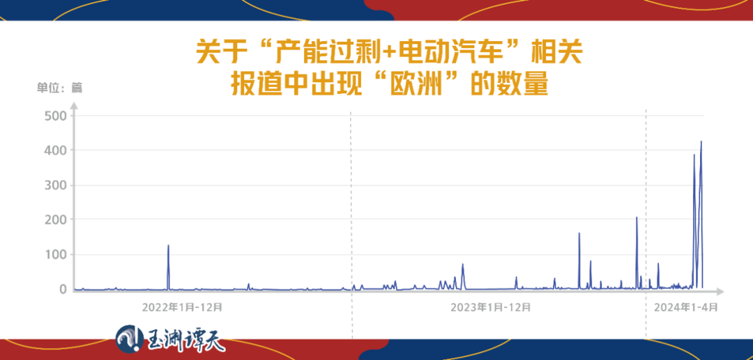 為了拆解美方的敘事套路,我們又定向?qū)λ^中國“產(chǎn)能過剩論”的報(bào)道中有關(guān)“新能源汽車”報(bào)道的趨勢(shì)變化進(jìn)行了分析。