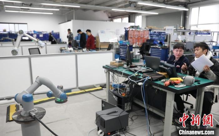人工智能讓中國制造業(yè)從“追趕者”變身“領(lǐng)跑者”。圖為中科新松的工作人員正在對機器手臂進行位置標定?!埡鄠?攝