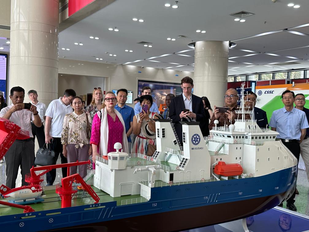 圖為駐華使節(jié)在中國(guó)科學(xué)院深海科學(xué)與工程研究所參觀。新華社記者 袁睿 攝