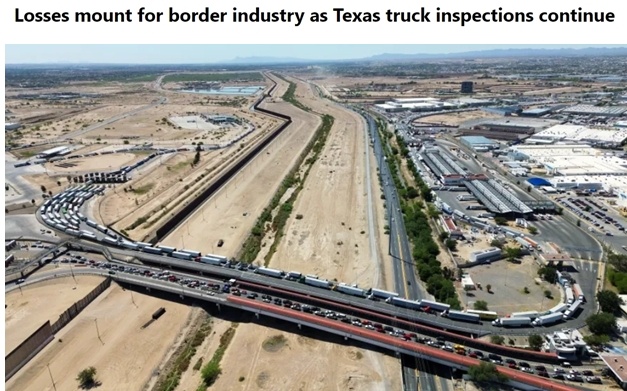 近日,為應(yīng)對(duì)近期大規(guī)模移民潮,美國得克薩斯州政府在美墨邊境重新設(shè)置了隨機(jī)檢查站,宣布對(duì)進(jìn)入美國的貨運(yùn)卡車進(jìn)行額外安全檢查,造成卡車嚴(yán)重?fù)矶隆?/p>