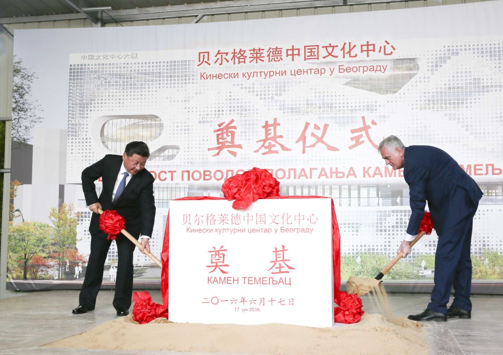 2016年6月17日,國家主席習(xí)近平與時(shí)任塞爾維亞總統(tǒng)尼科利奇在貝爾格萊德共同出席中國文化中心奠基儀式。