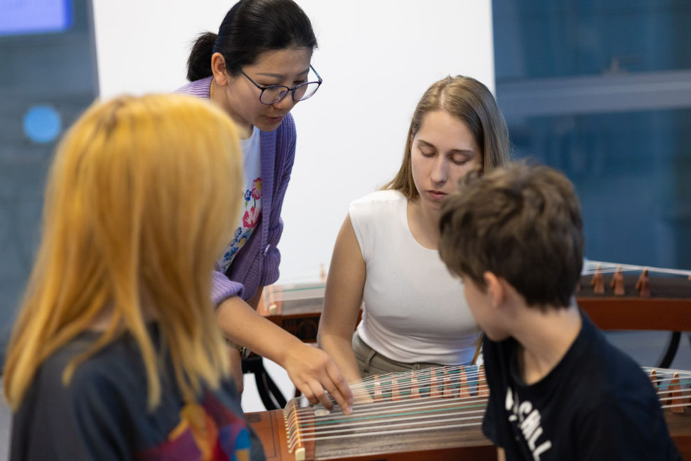 2024年4月29日,在貝爾格萊德中國文化中心,古箏指導(dǎo)老師王宣(后左)在教學(xué)。
