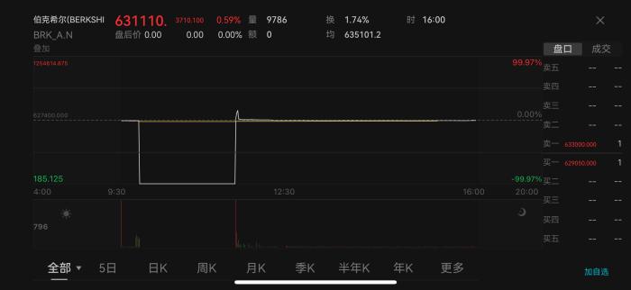 周一開盤,美股遭遇多股異動,40余只股票集體瞬間暴跌近100%。其中,股神巴菲特旗下的伯克希爾公司A類股從每股62萬美元的高價跳至185.1美元,巴里克黃金、紐斯卡爾動力公司等股票一度掉至不到1美元/股的“白菜價”。