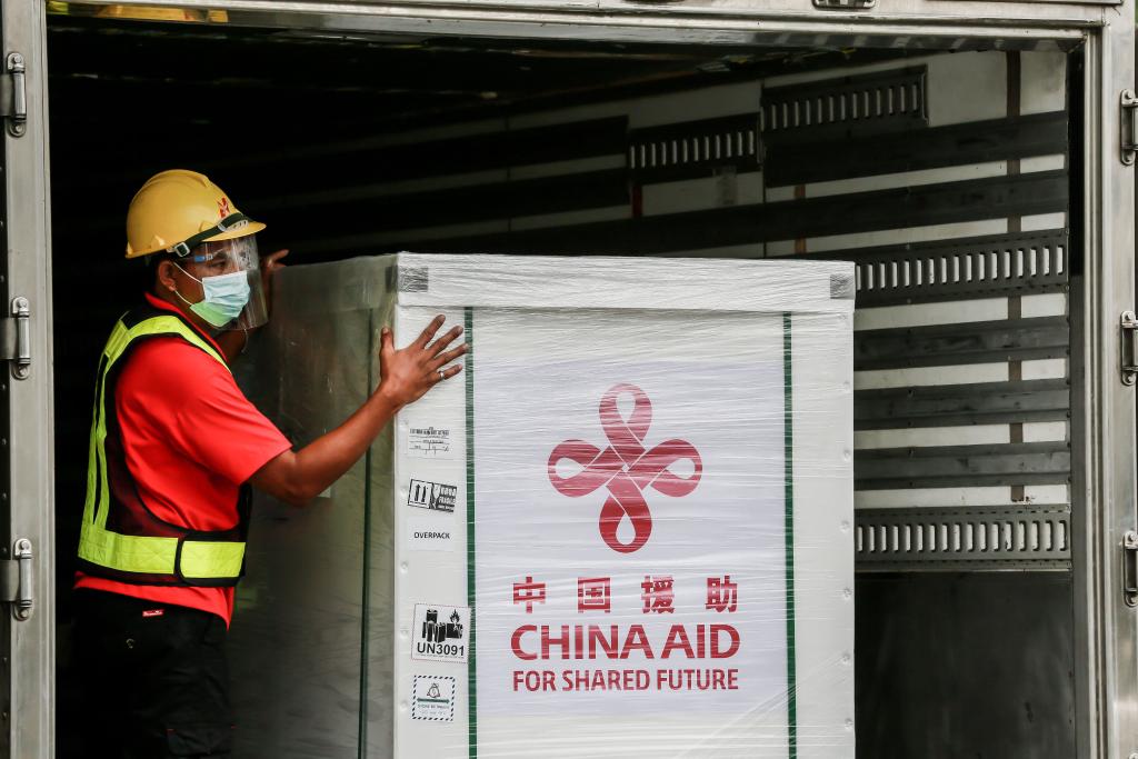2021年3月24日,工作人員在菲律賓馬尼拉國際機(jī)場搬運(yùn)科興疫苗。新華社發(fā)(烏馬利攝)