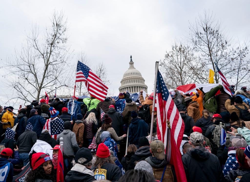 2021年1月6日,在美國首都華盛頓,時任總統(tǒng)特朗普的支持者在國會外舉行示威游行,部分示威者沖進國會大廈,與警方發(fā)生沖突,造成一人死亡,當(dāng)時正在舉行的認(rèn)證大選結(jié)果的國會參眾兩院聯(lián)席會議也被迫中斷。新華社記者劉杰攝