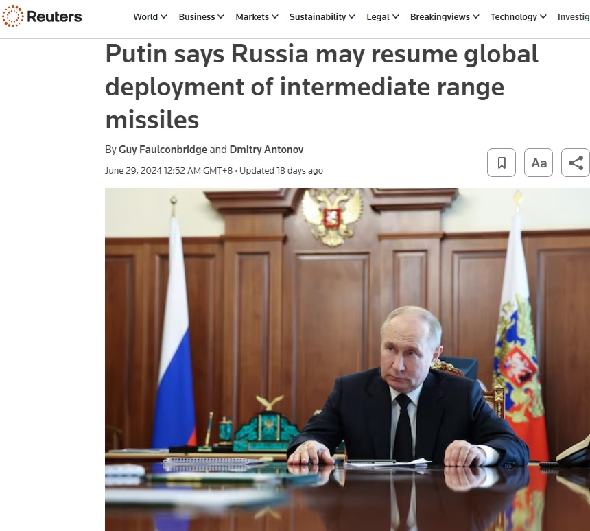 俄方不止一次發(fā)布消息說,美國的陸基中導(dǎo)系統(tǒng)已經(jīng)出現(xiàn)在歐洲的軍事訓(xùn)練中。俄總統(tǒng)普京上月底曾警告,作為對(duì)美國敵對(duì)行動(dòng)的回應(yīng),莫斯科可能會(huì)恢復(fù)陸基中導(dǎo)的生產(chǎn)和全球部署。