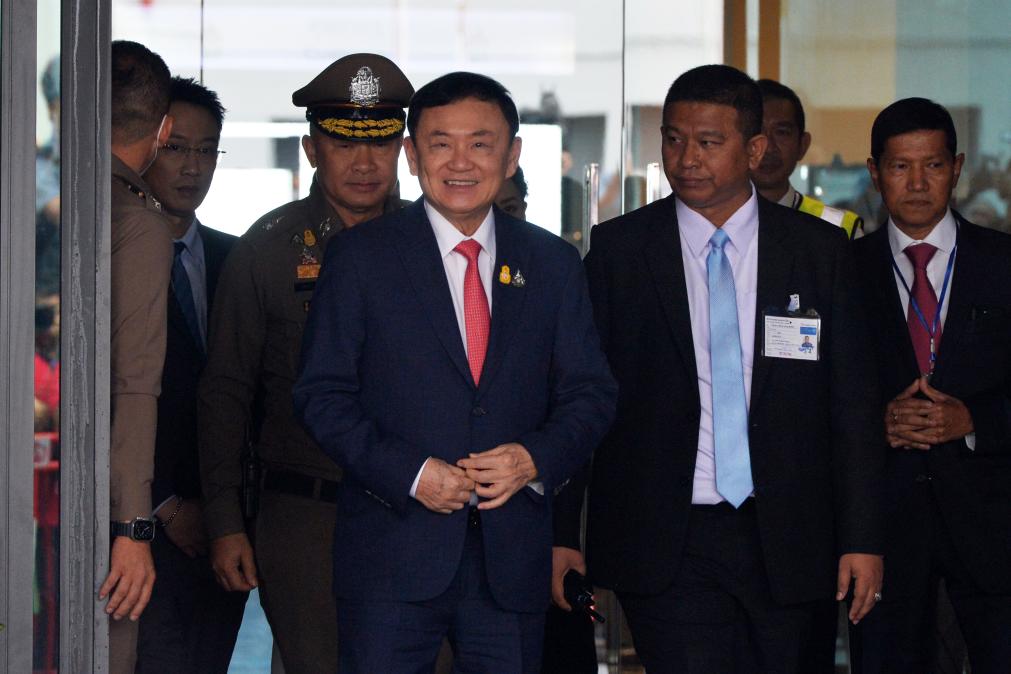 2023年8月22日,泰國前總理他信(中)抵達曼谷廊曼機場。新華社發(fā)(拉亨攝)