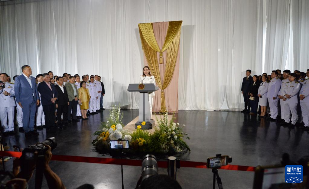 8月18日,新任泰國(guó)總理佩通坦·欽那瓦在曼谷出席新聞發(fā)布會(huì)。 新華社發(fā)(拉亨攝)