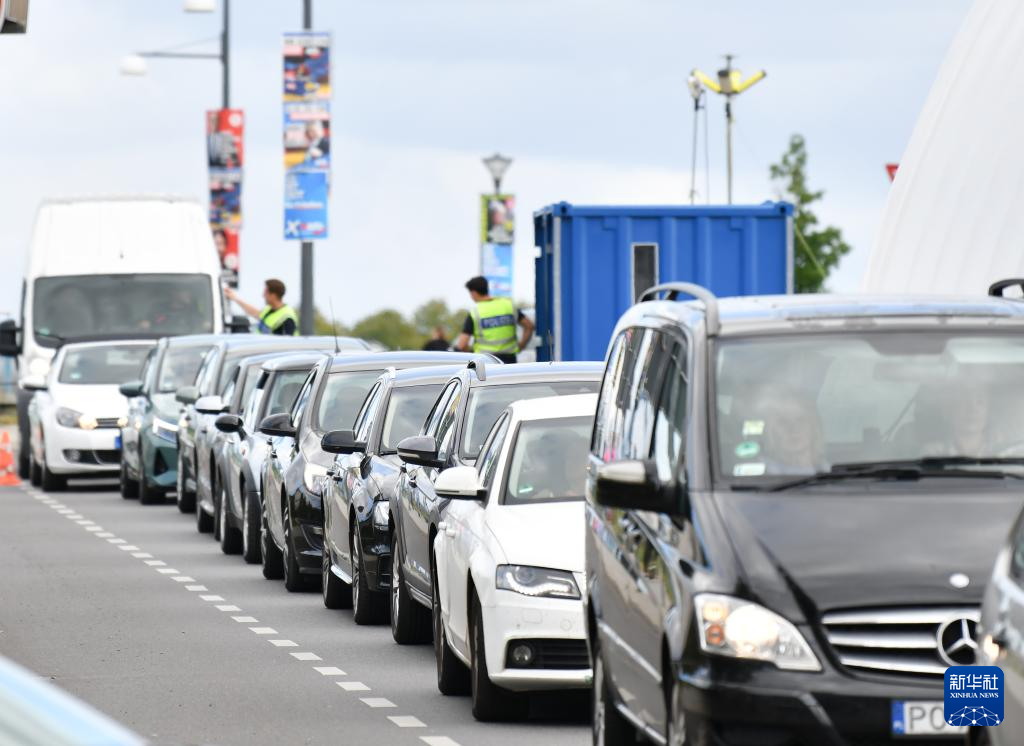 9月10日,車輛排隊(duì)通過德國(guó)奧得河畔法蘭克福和波蘭斯武比采邊境的檢查站。新華社記者 任鵬飛 攝