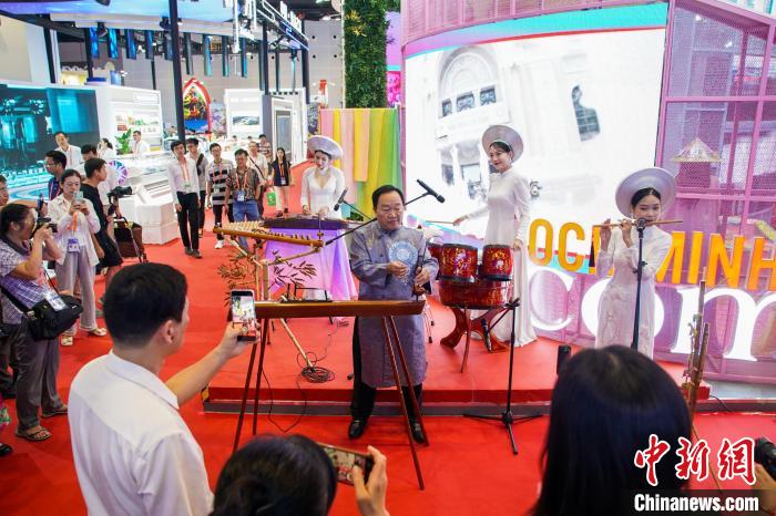 第21屆中國—東盟博覽會于9月24日至28日在廣西南寧舉行。圖為越南民族樂器表演吸引參觀者。陳冠言 攝