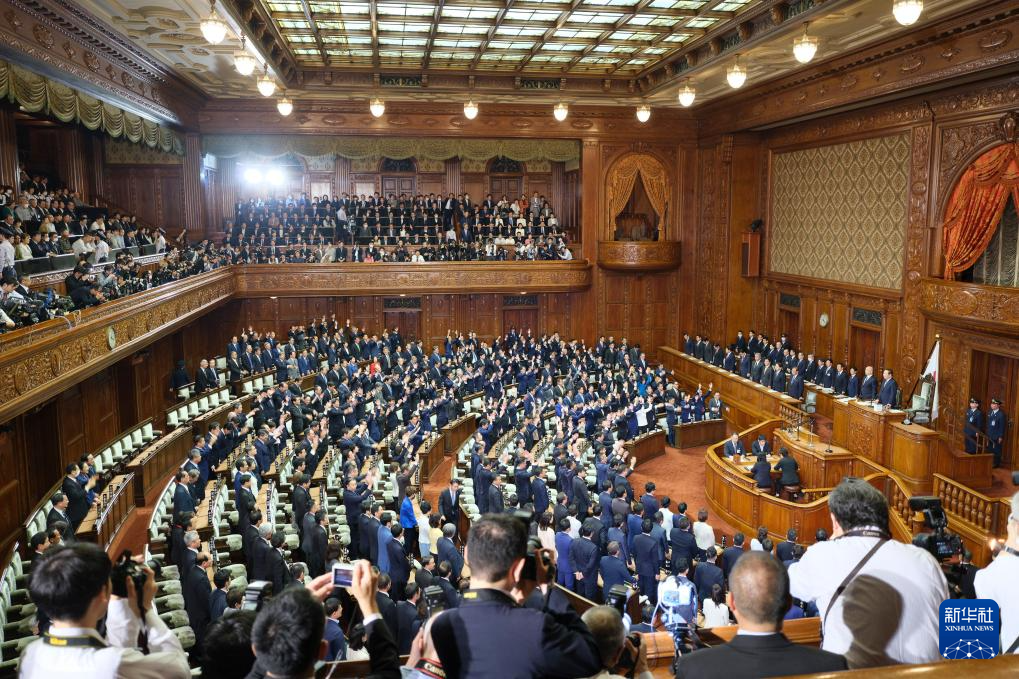 10月9日,日本首相石破茂(前排右)出席在首都東京舉行的眾議院全體會議。新華社記者 張笑宇 攝