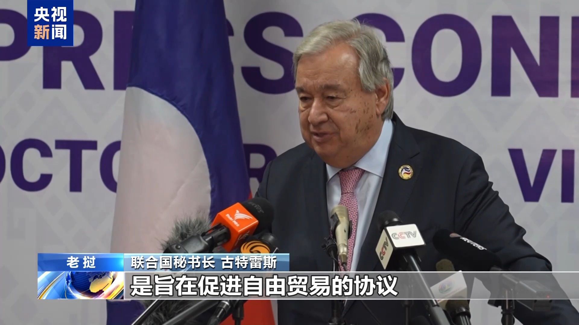 聯(lián)合國秘書長 古特雷斯:聯(lián)合國始終致力于首先確保全球經(jīng)濟的完整性,遵循統(tǒng)一的規(guī)則,使用同一個全球網(wǎng)絡(luò),我們必須不惜一切代價避免分裂。那么,是什么將各國團結(jié)在這個全球經(jīng)濟中呢?是旨在促進自由貿(mào)易的協(xié)議以及為經(jīng)濟增長創(chuàng)造條件的協(xié)議,從聯(lián)合國的角度看,我們非常歡迎這項協(xié)議。