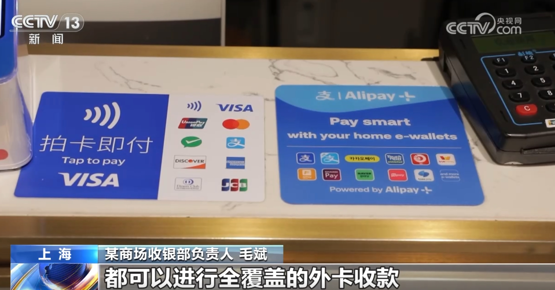 某商場收銀部負(fù)責(zé)人毛斌稱:“外國顧客到我們商場購物越來越多了,所以我們針對外國顧客的付款方式進行了收銀方面的調(diào)整改進,目前商場所有的收銀設(shè)備都可以進行全覆蓋的外卡收款?!?/p>