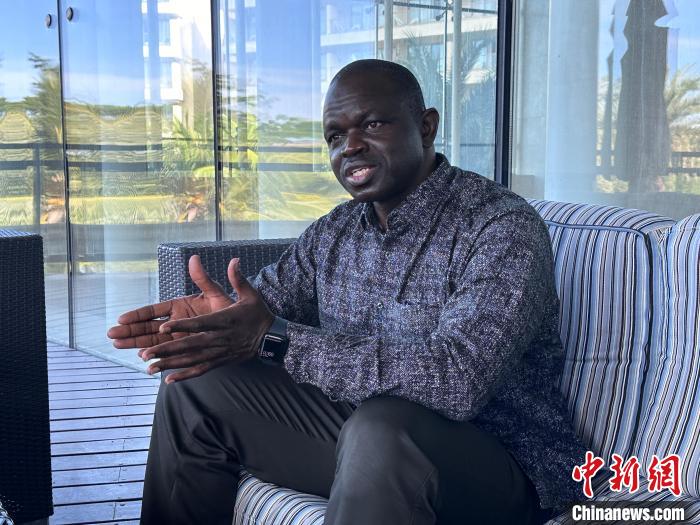 非洲水稻中心總干事巴布卡爾·曼內(Baboucarr Manneh)日前在三亞接受記者采訪。中新社記者 薄雯雯 攝