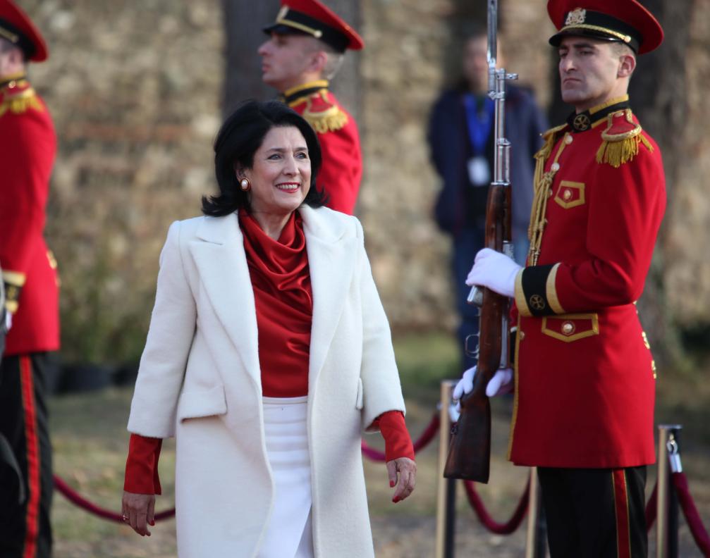 2018年12月16日,格魯吉亞當(dāng)選總統(tǒng)薩洛梅·祖拉比什維利在格東部城市泰拉維宣誓就職,成為格魯吉亞獨立后首位女總統(tǒng)。新華社發(fā)(格魯吉亞總統(tǒng)府供圖)