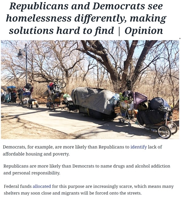 美國(guó)堪薩斯州《威奇托鷹報(bào)》評(píng)論稱(chēng),兩黨可能永遠(yuǎn)不會(huì)就無(wú)家可歸的原因達(dá)成一致,民主黨傾向于認(rèn)為是結(jié)構(gòu)性或系統(tǒng)性因素導(dǎo)致,而共和黨則更著重宣傳是個(gè)人因素導(dǎo)致。但無(wú)論是民主黨還是共和黨都無(wú)法解決無(wú)家可歸問(wèn)題,他們相左的政策意見(jiàn)讓解決無(wú)家可歸者的問(wèn)題更加艱難,流向需要援助的民眾的資金越來(lái)越少。