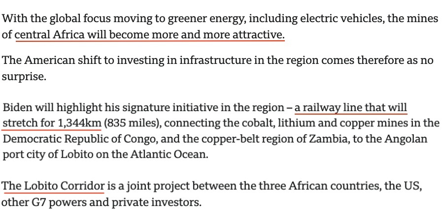 英國廣播公司報(bào)道稱,拜登此次非洲之行的重點(diǎn)是“洛比托走廊”項(xiàng)目。