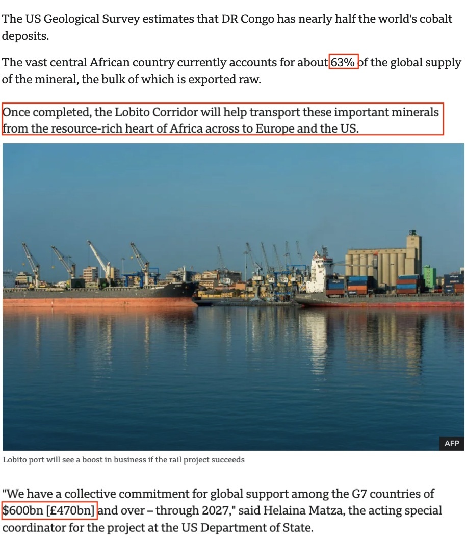 “洛比托走廊”是剛果(金)、贊比亞和安哥拉這三個(gè)非洲國家以及美國、其他七國集團(tuán)(G7)成員國和私人投資者之間的一個(gè)聯(lián)合項(xiàng)目。這條全長1344公里的鐵路線將剛果(金)的鈷、鋰和銅礦以及贊比亞的銅帶地區(qū)連接到安哥拉的大西洋港口城市洛比托。
