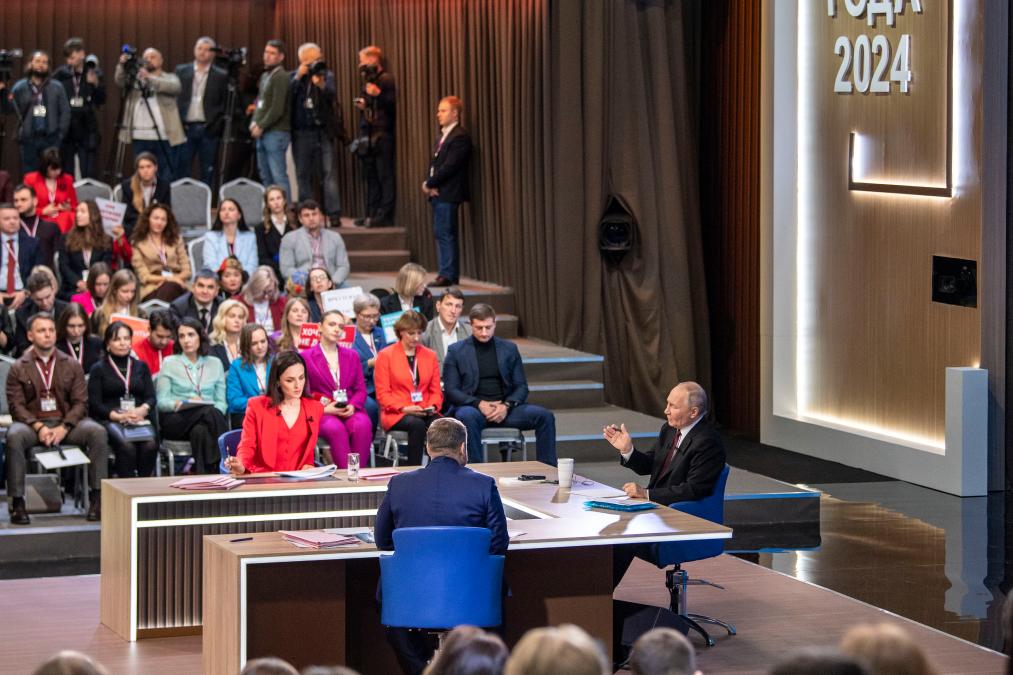 “年度盤點”當?shù)貢r間中午播出,普京以現(xiàn)場問答和直播連線形式回答記者和俄羅斯公民的提問。根據(jù)“俄羅斯24”電視臺的數(shù)據(jù),直播連線開始前3個小時,俄羅斯人已向普京提出超過200萬個問題。