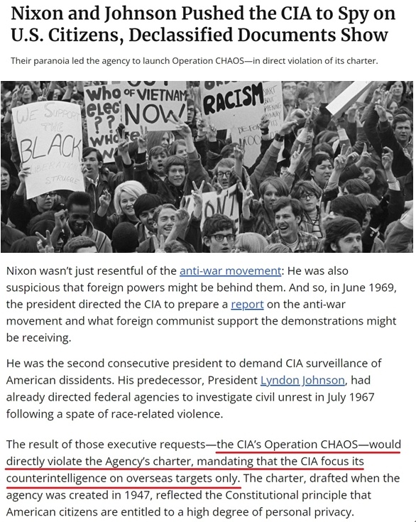 是什么促使中情局違反自己的成立宗旨,在美國領(lǐng)土上監(jiān)聽監(jiān)視美國公民?這就要提一提由美國史上兩位總統(tǒng)授意實(shí)施的國內(nèi)間諜項(xiàng)目“混沌行動(dòng)”了。