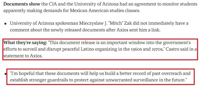此外,中情局還試圖密切監(jiān)控亞利桑那州、加利福尼亞州和科羅拉多州的墨西哥裔美國學(xué)生活動(dòng)人士,甚至讓臥底特工滲透到學(xué)生團(tuán)體中。