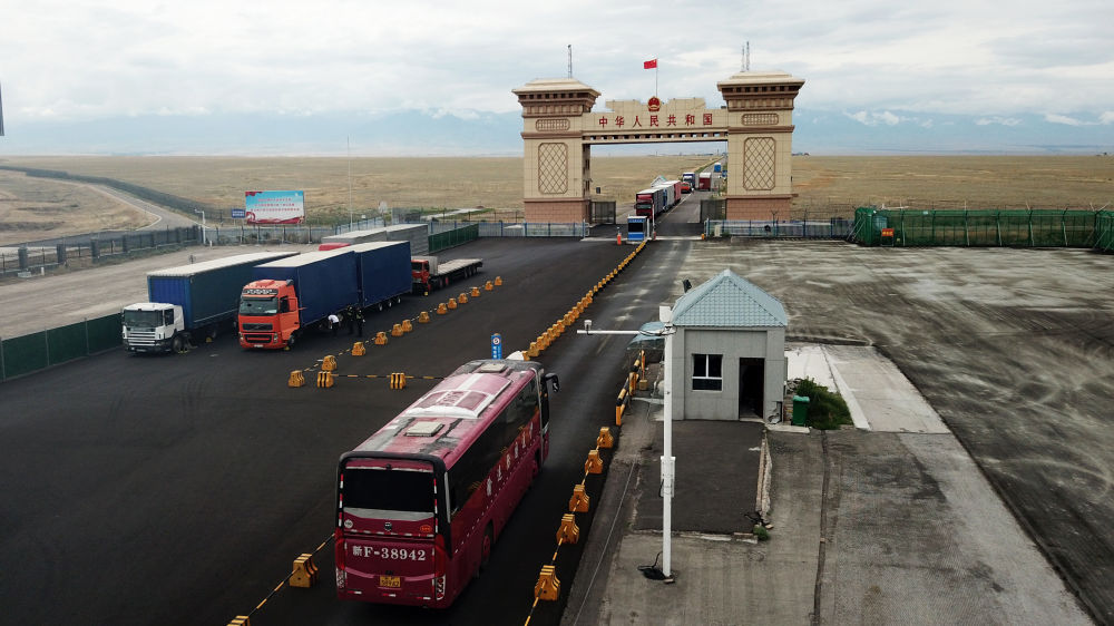 2024年7月15日,一輛國(guó)際客運(yùn)班車即將駛出國(guó)門,前往哈薩克斯坦(無人機(jī)照片)。新華社記者張嘯誠(chéng)攝