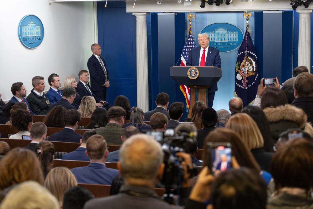 1月30日,美國總統(tǒng)特朗普在首都華盛頓的白宮出席新聞發(fā)布會(huì)。新華社記者胡友松攝